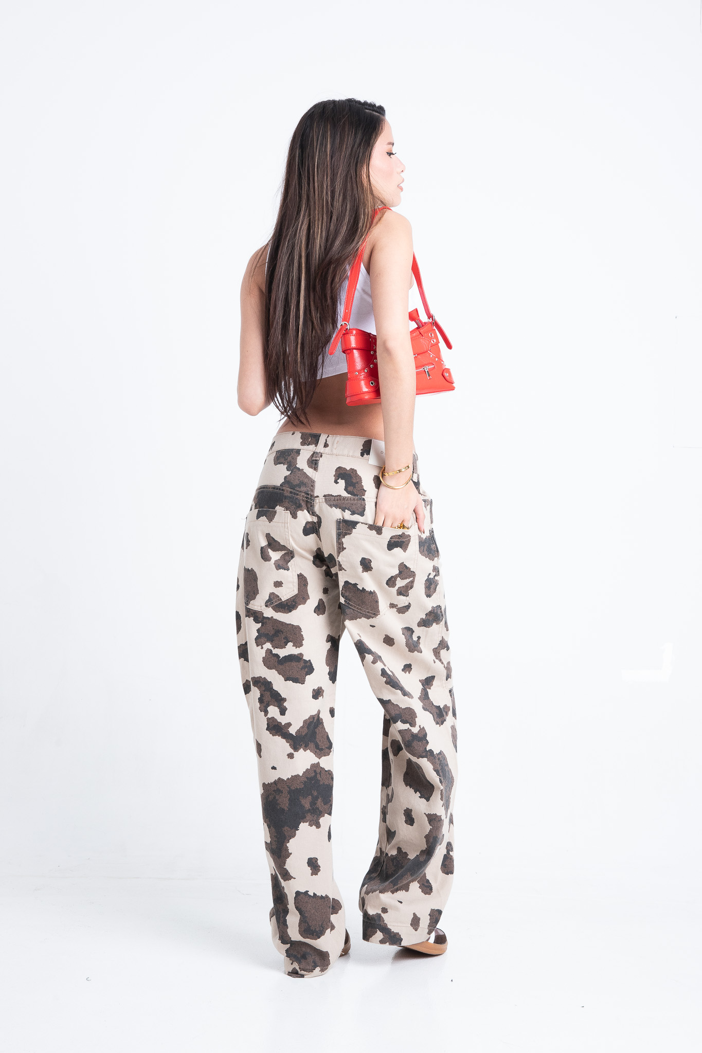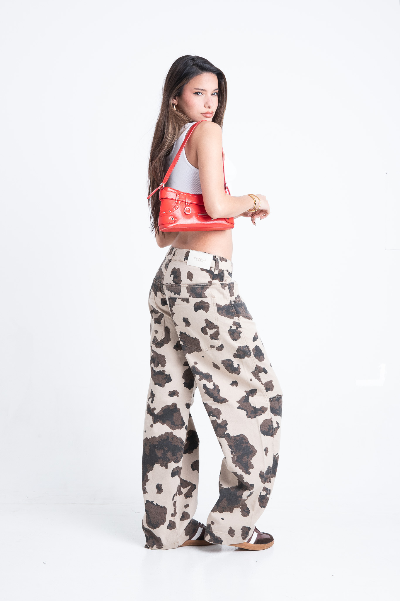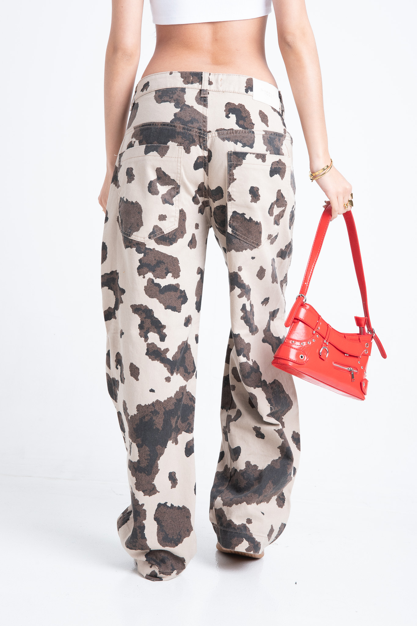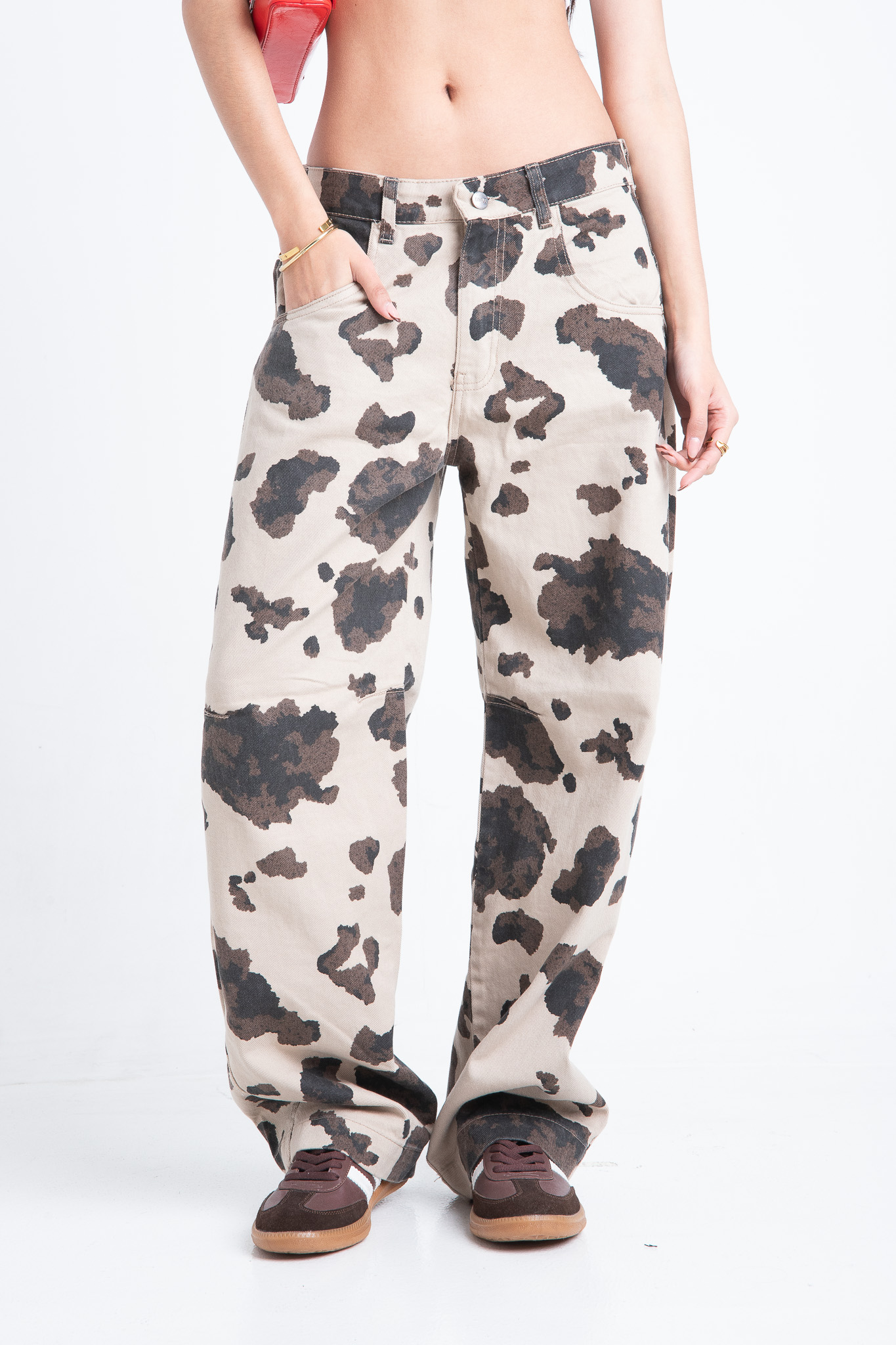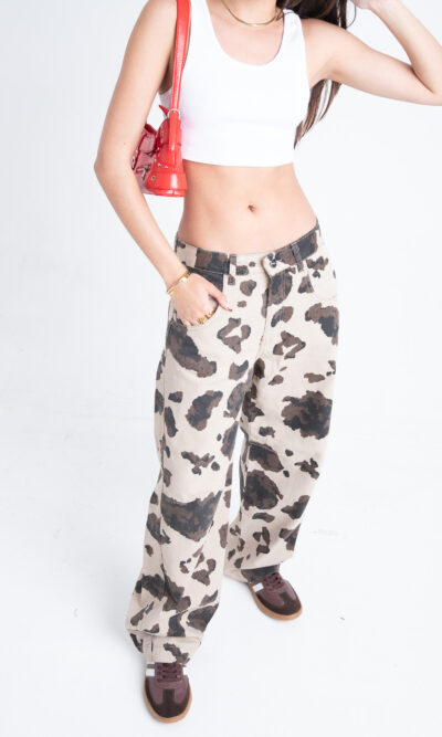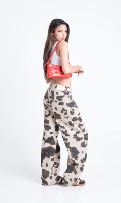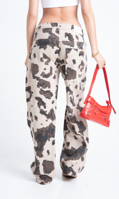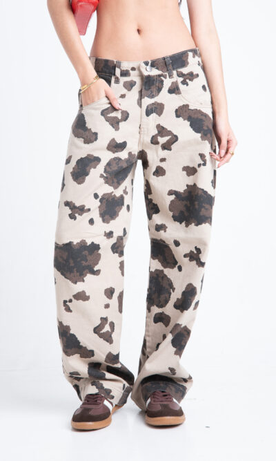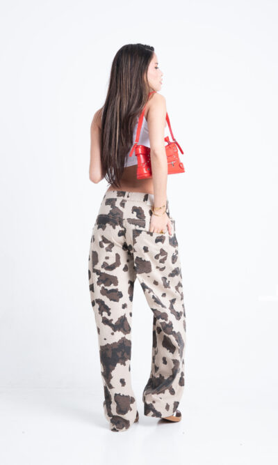 Baggy con pinzas estampado “vaca”. Rigido.