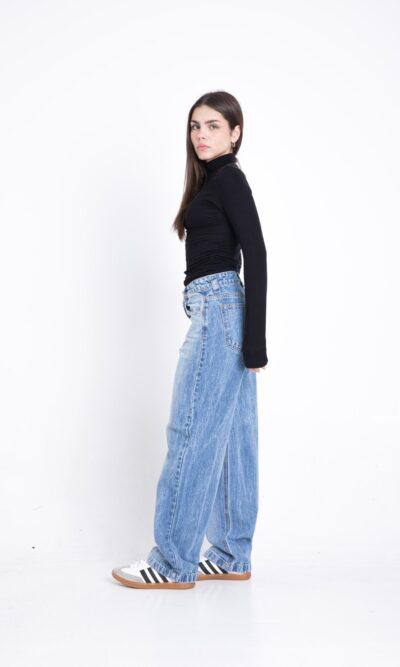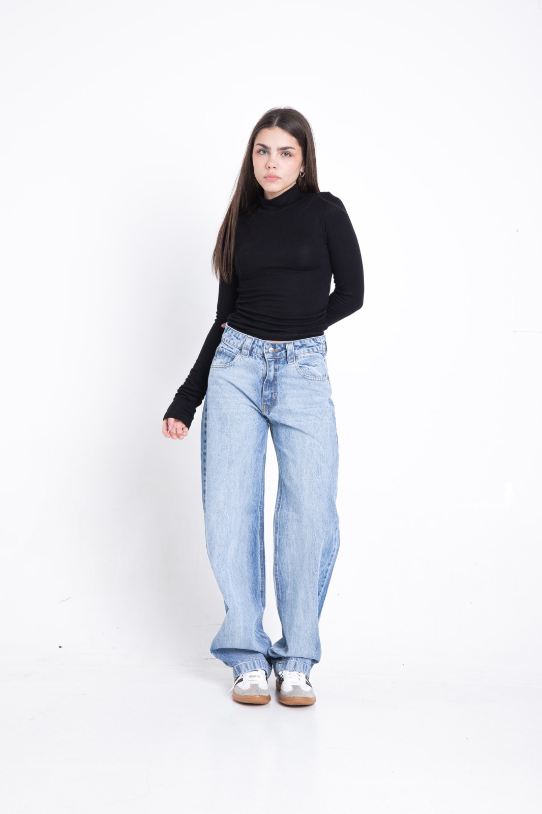 Pantalon balloon, bicolor (celeste adelante y azul atras), Tiro medio. Rigido.