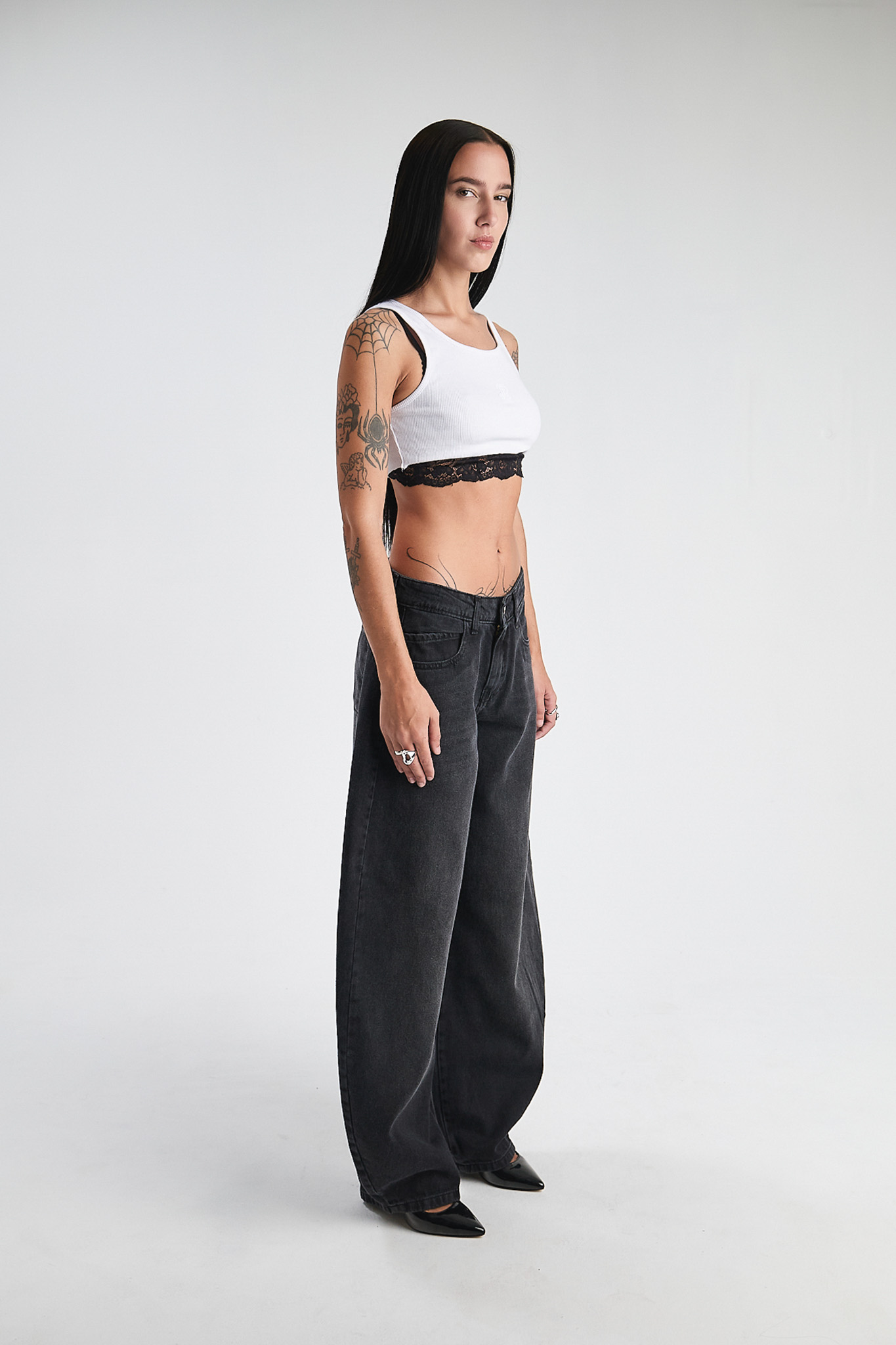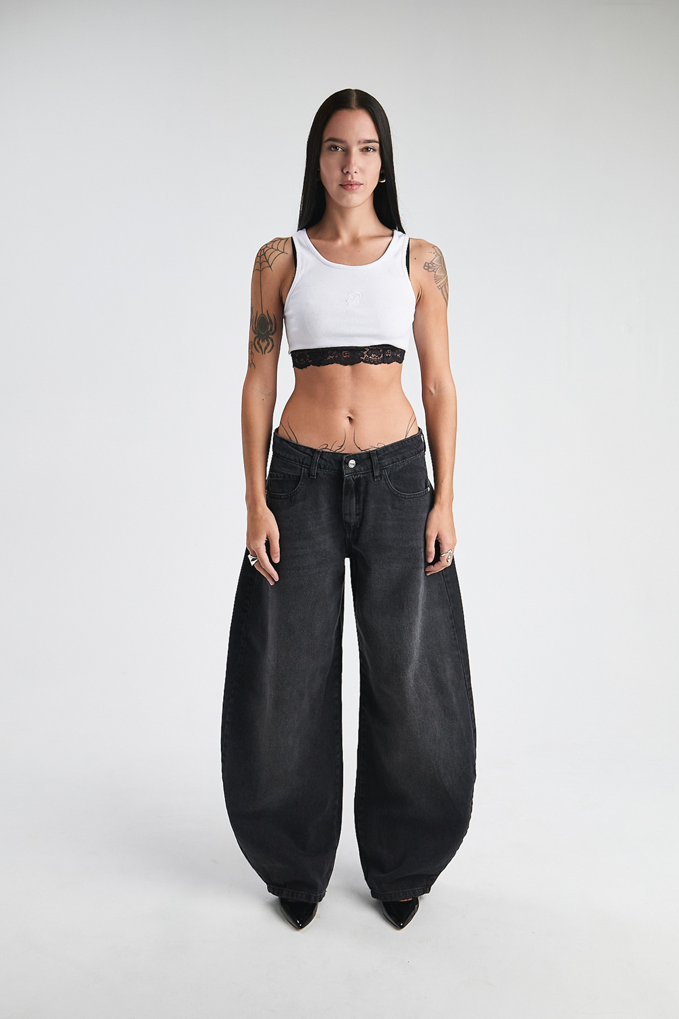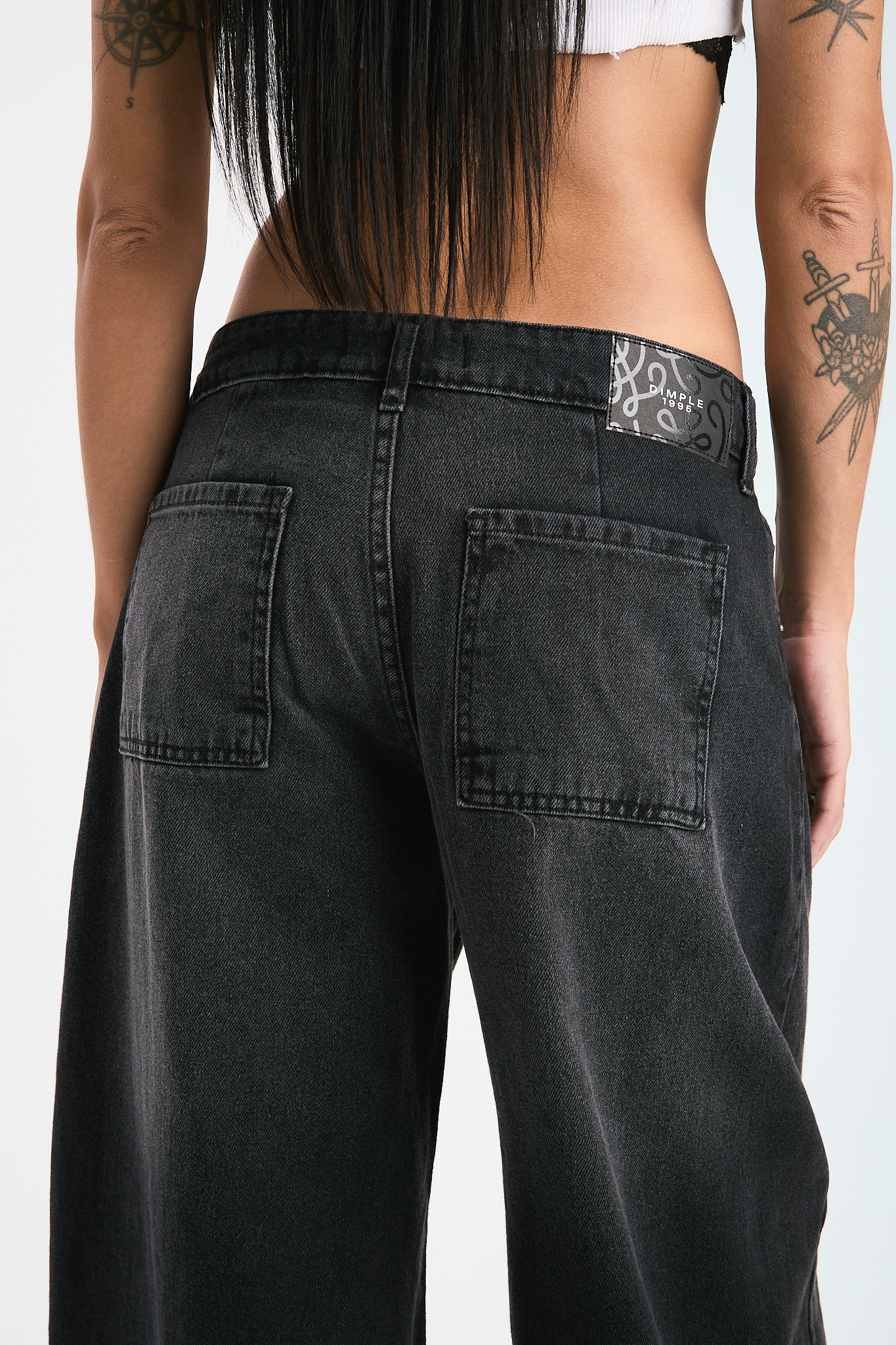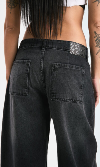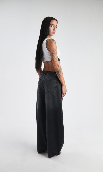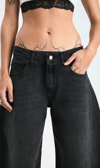 Pantalon barrel localizado. Tiro medio. Rigido