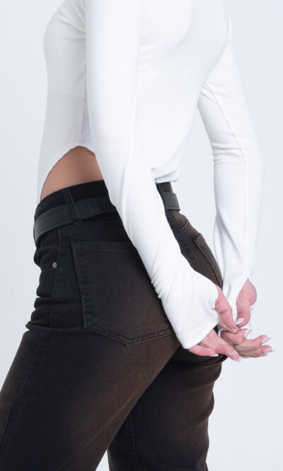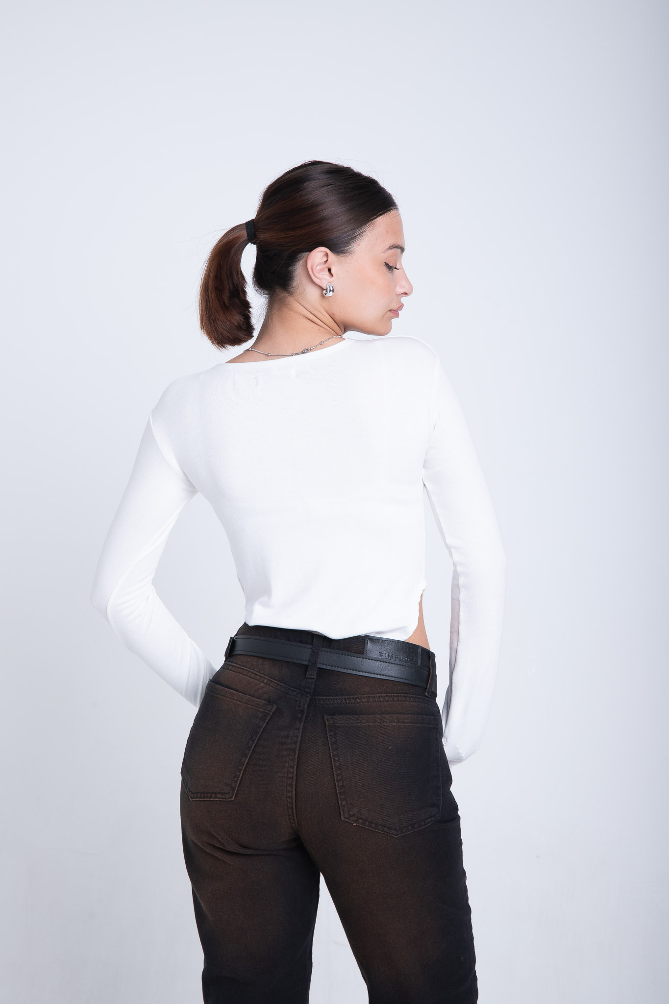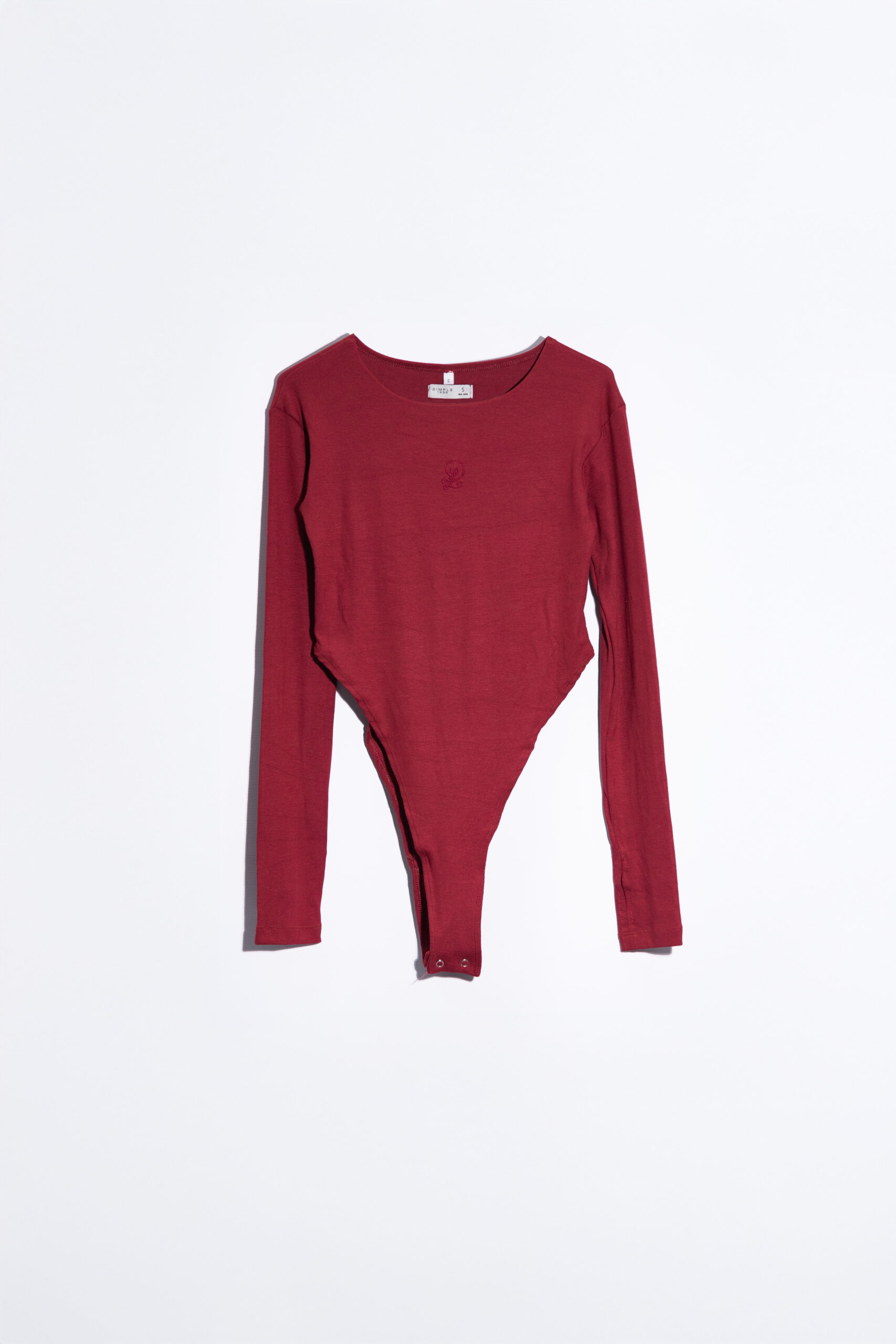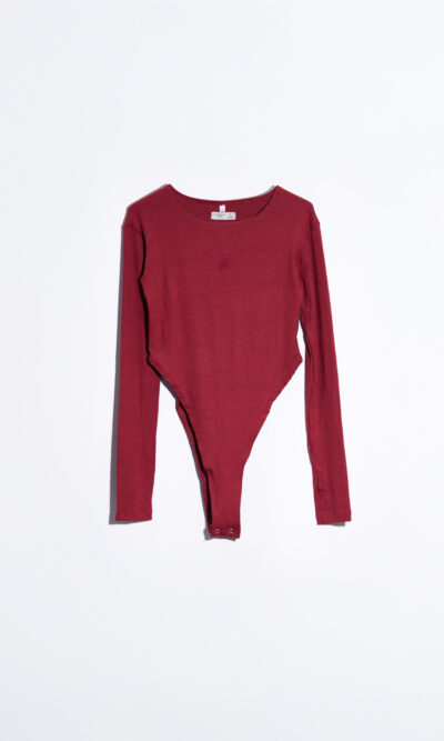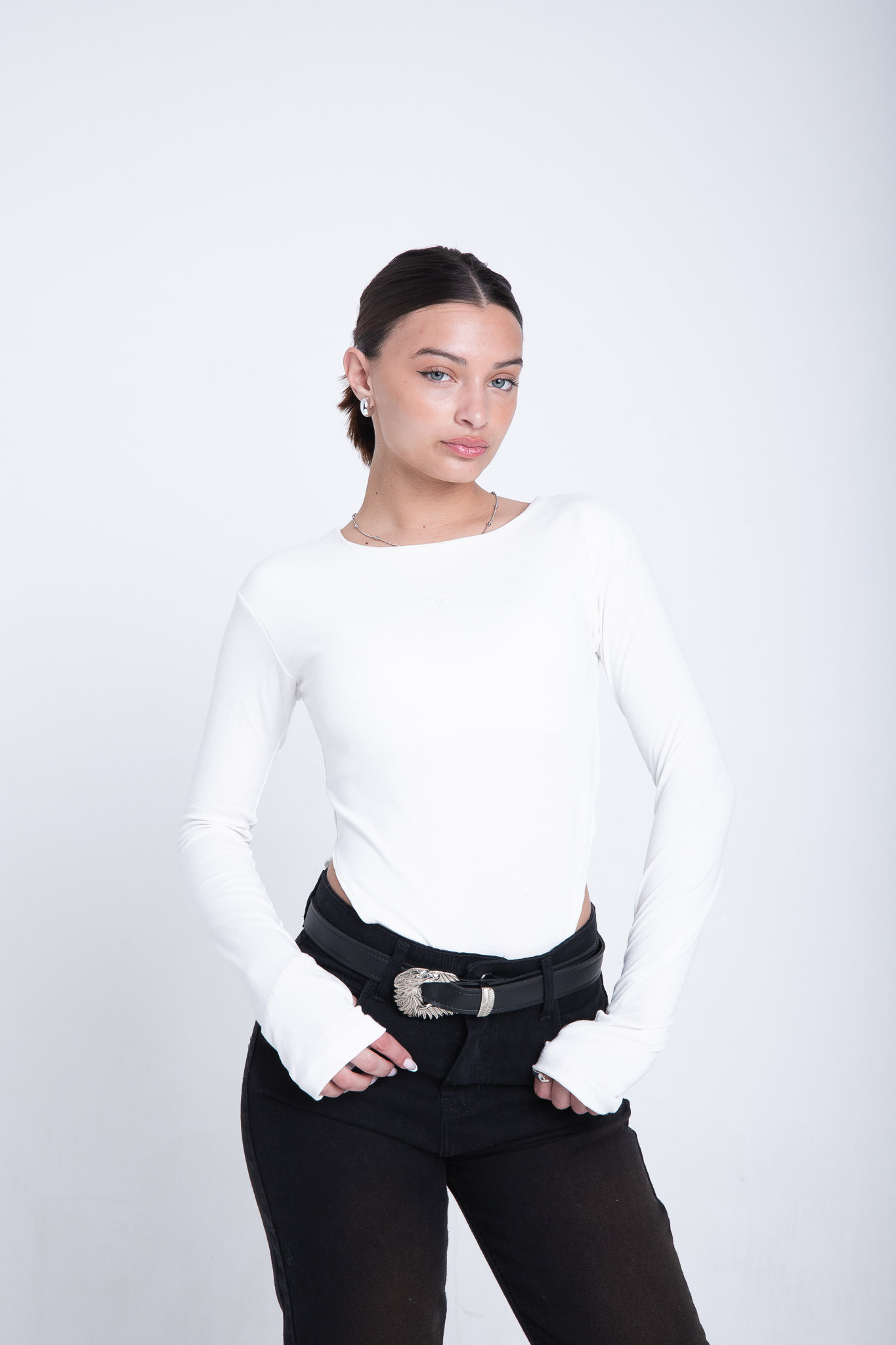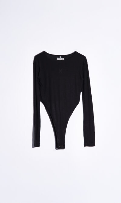 Body, algodon con lycra, con bordado al tono, dedal en manga, broches y doble tela en busto.
