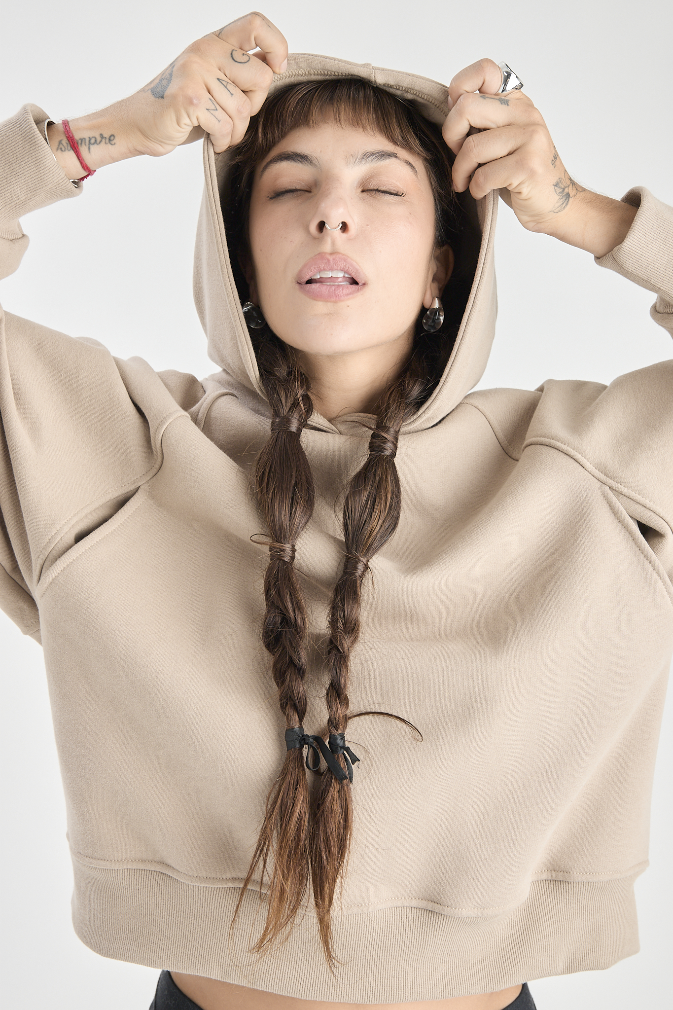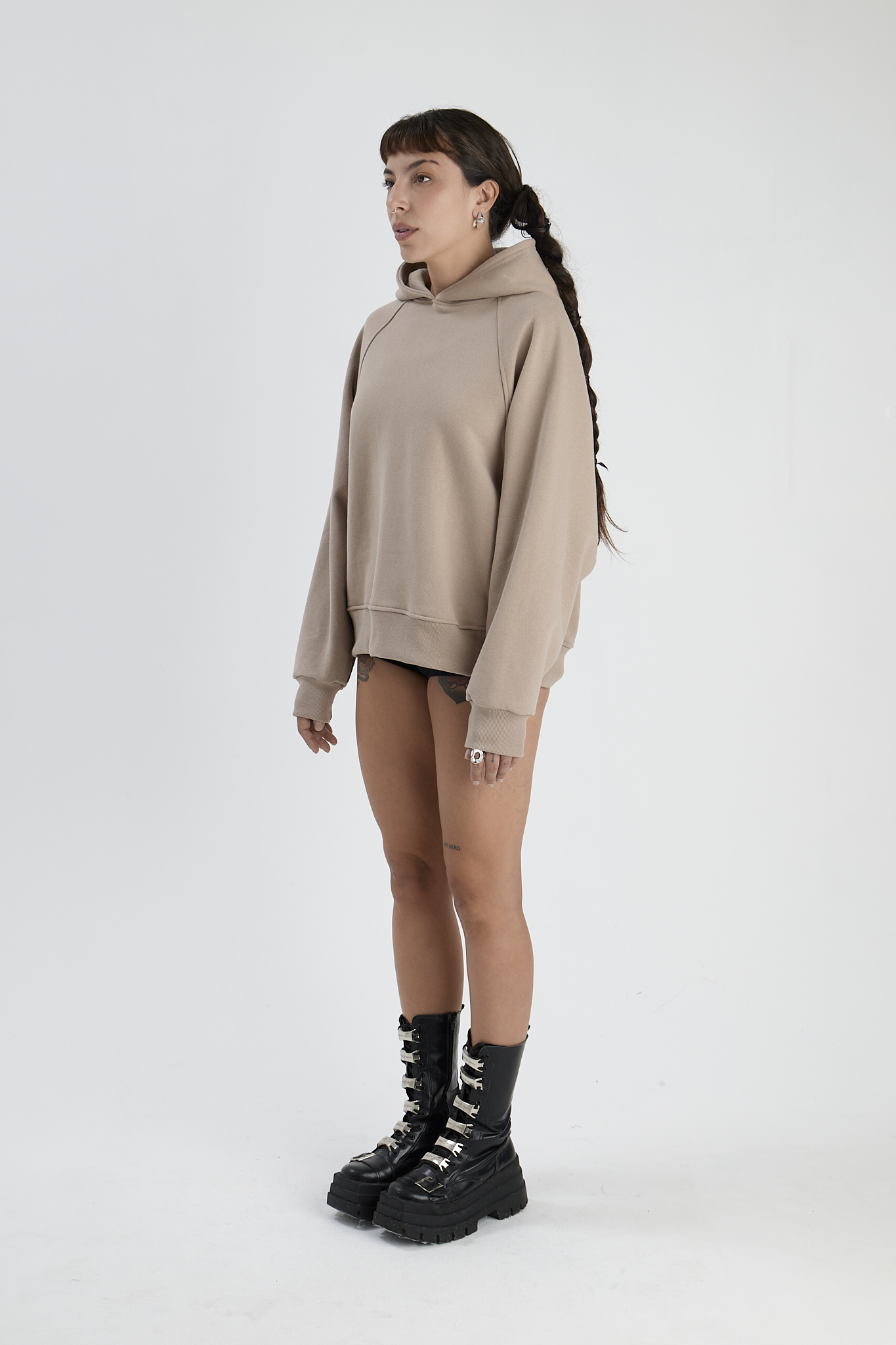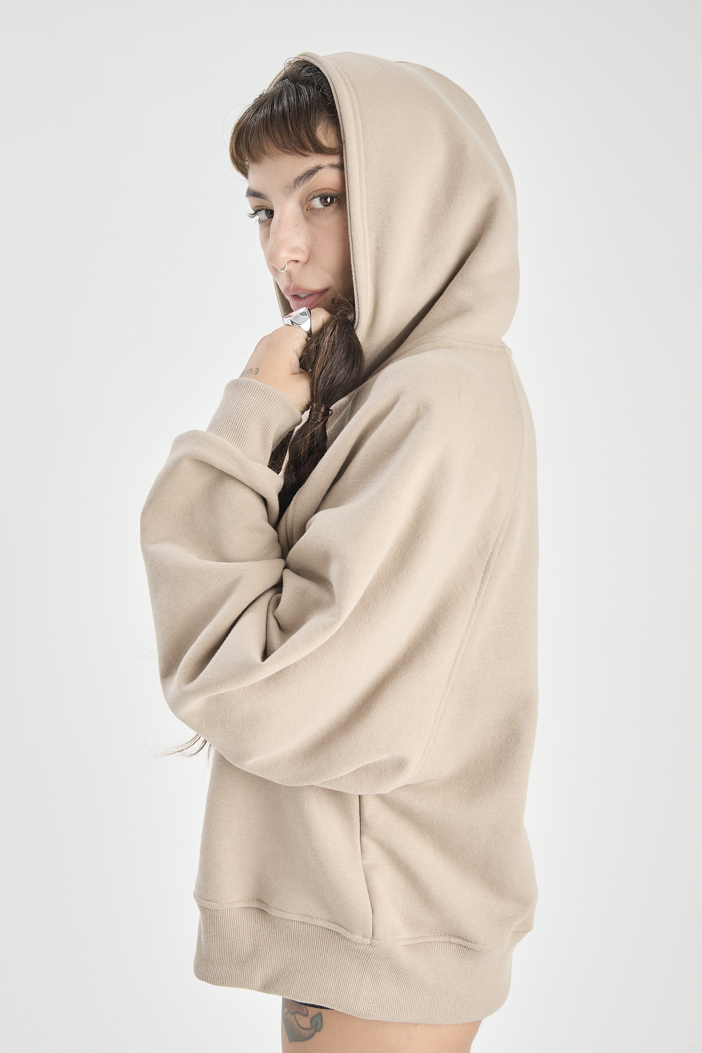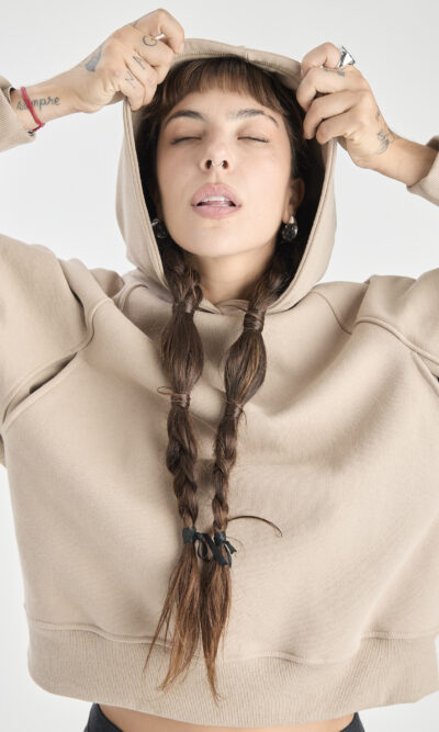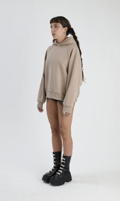Buzo frizado, con bolsillo color arena
