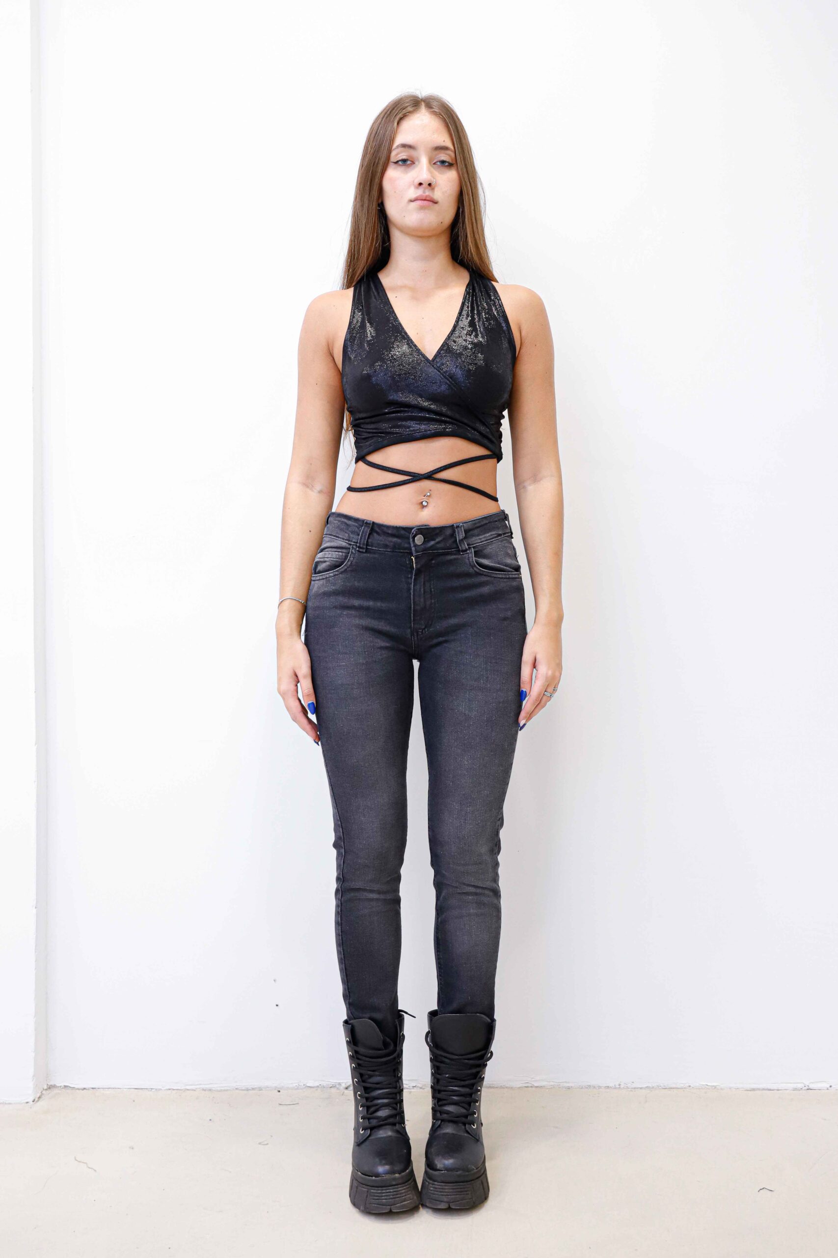 Chupín negro localizado, tiro bajo , ruedo normal. Elastizado