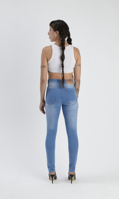 Chupin clasico celeste localizado. Tiro alto. Elastizado.