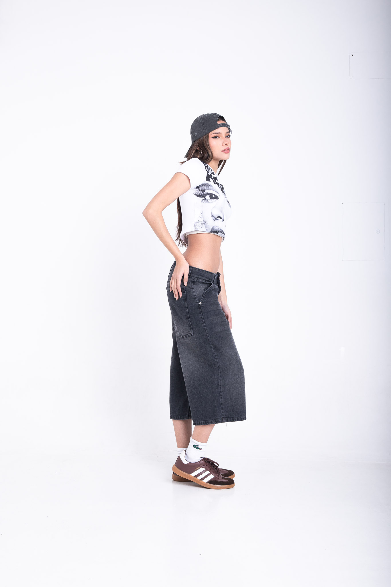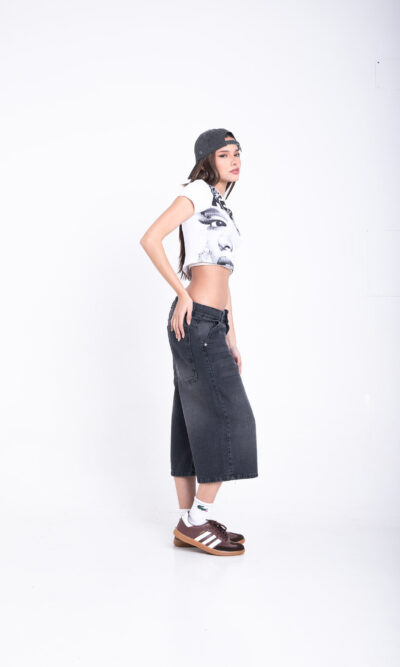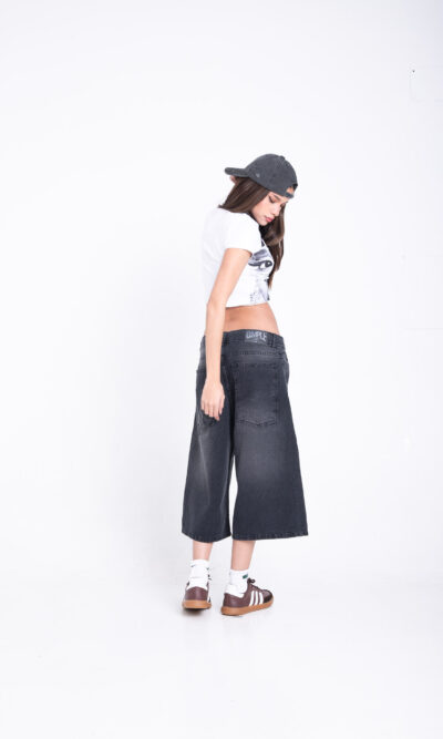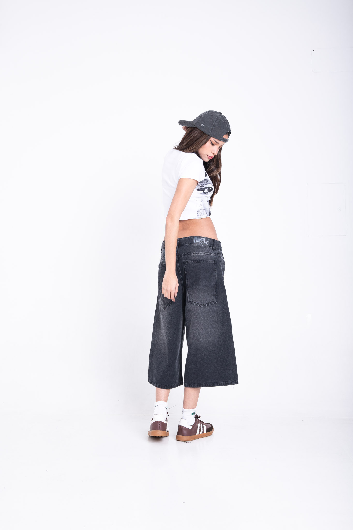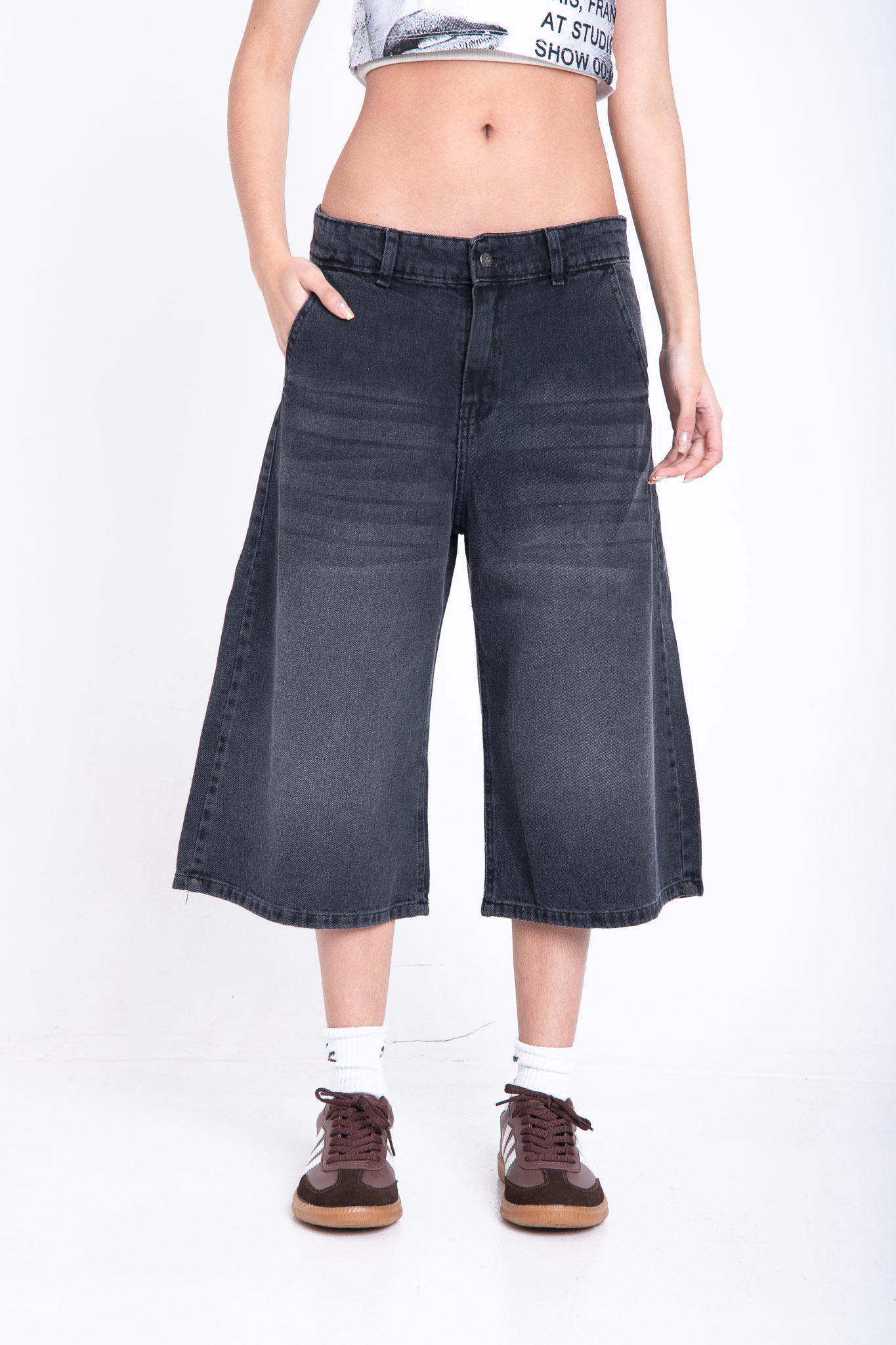 Bermuda Skater fit, negro localizadO, tiro bajo. Rigido
