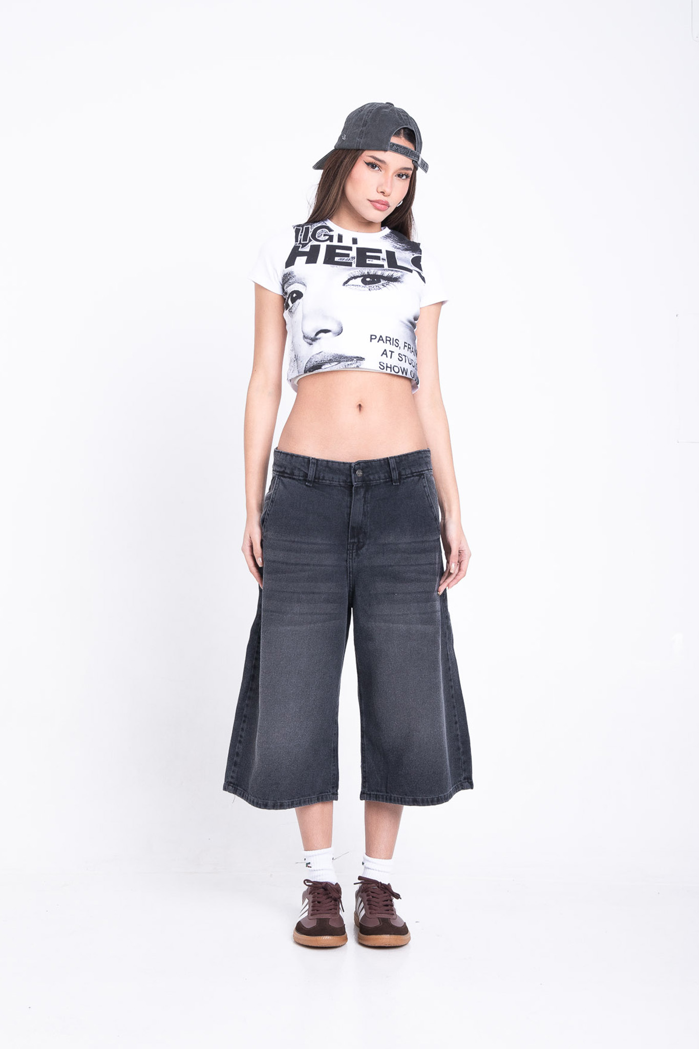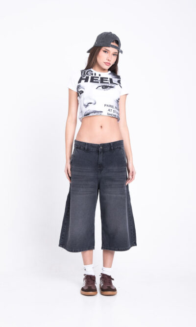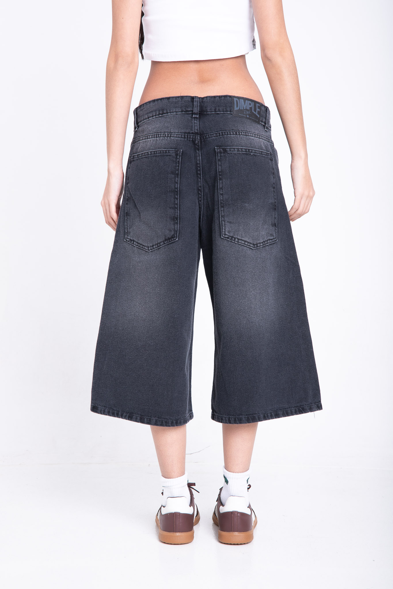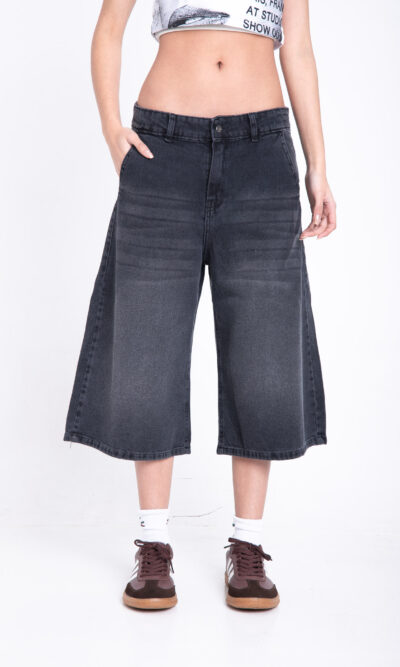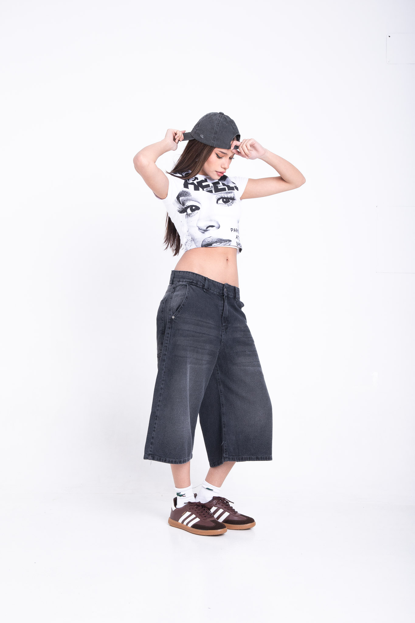 Bermuda Skater fit, negro localizadO, tiro bajo. Rigido