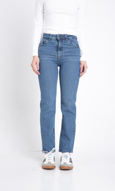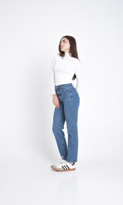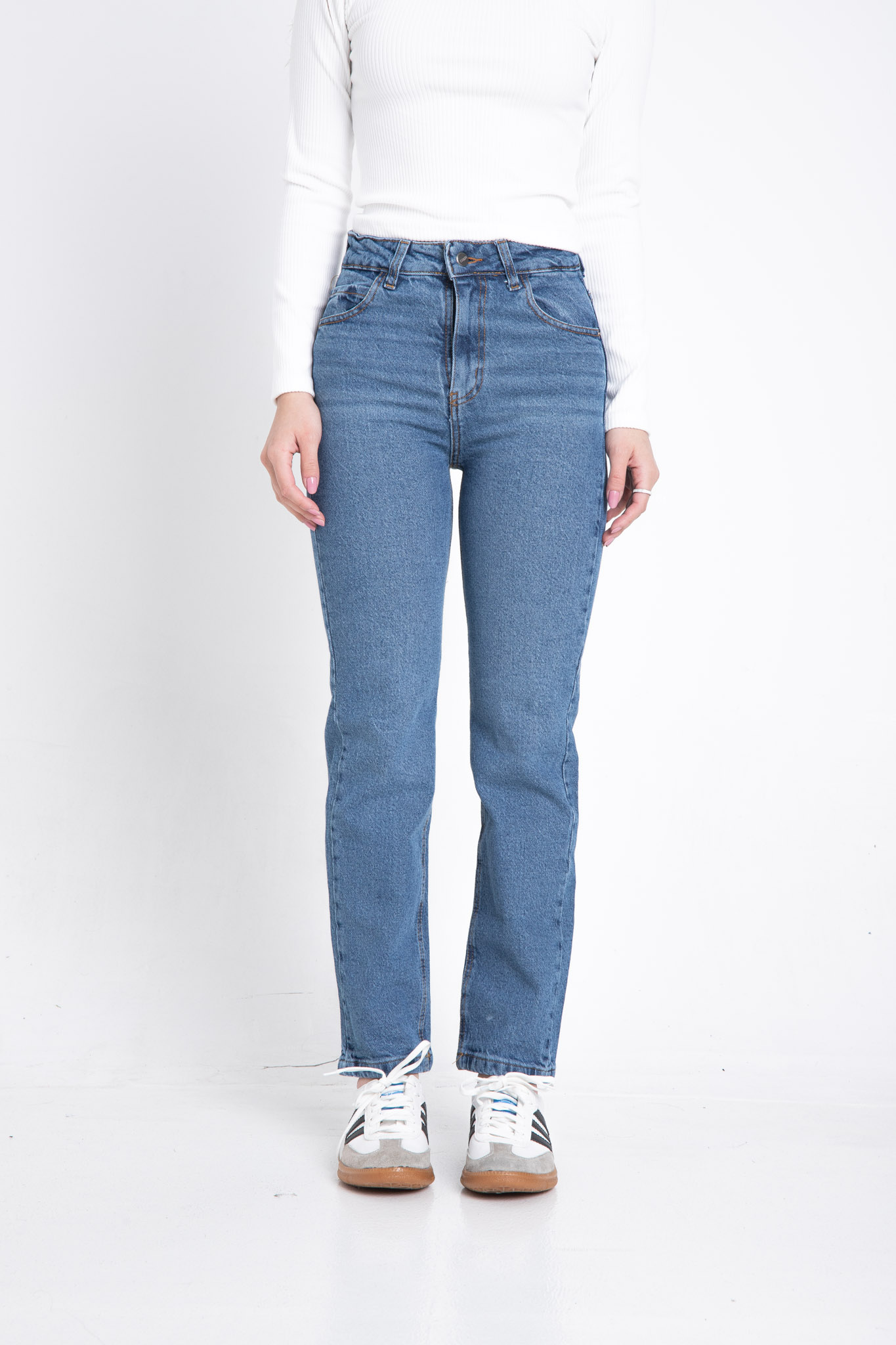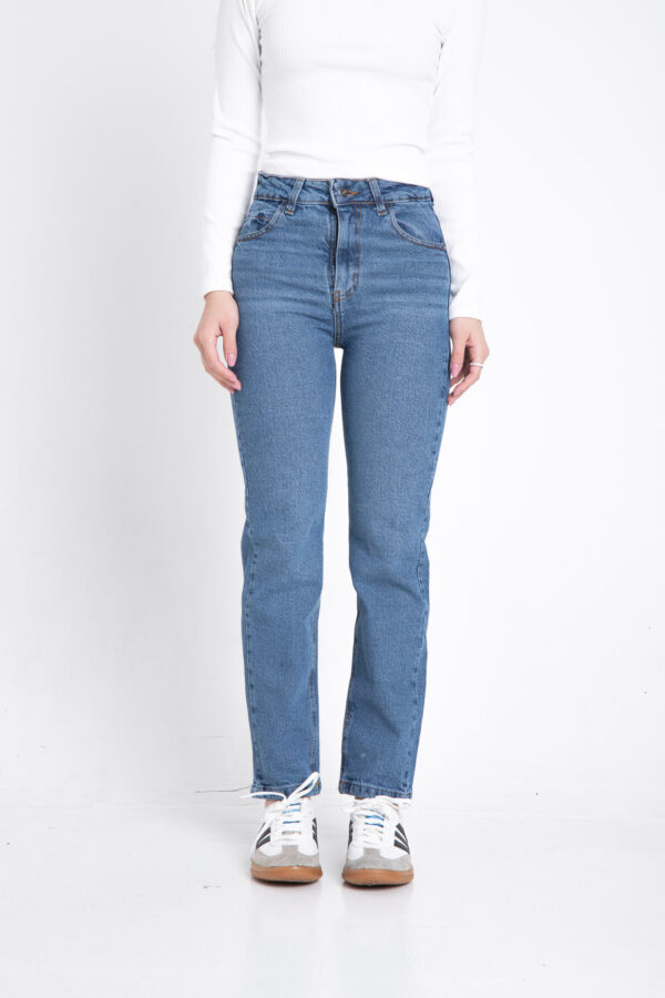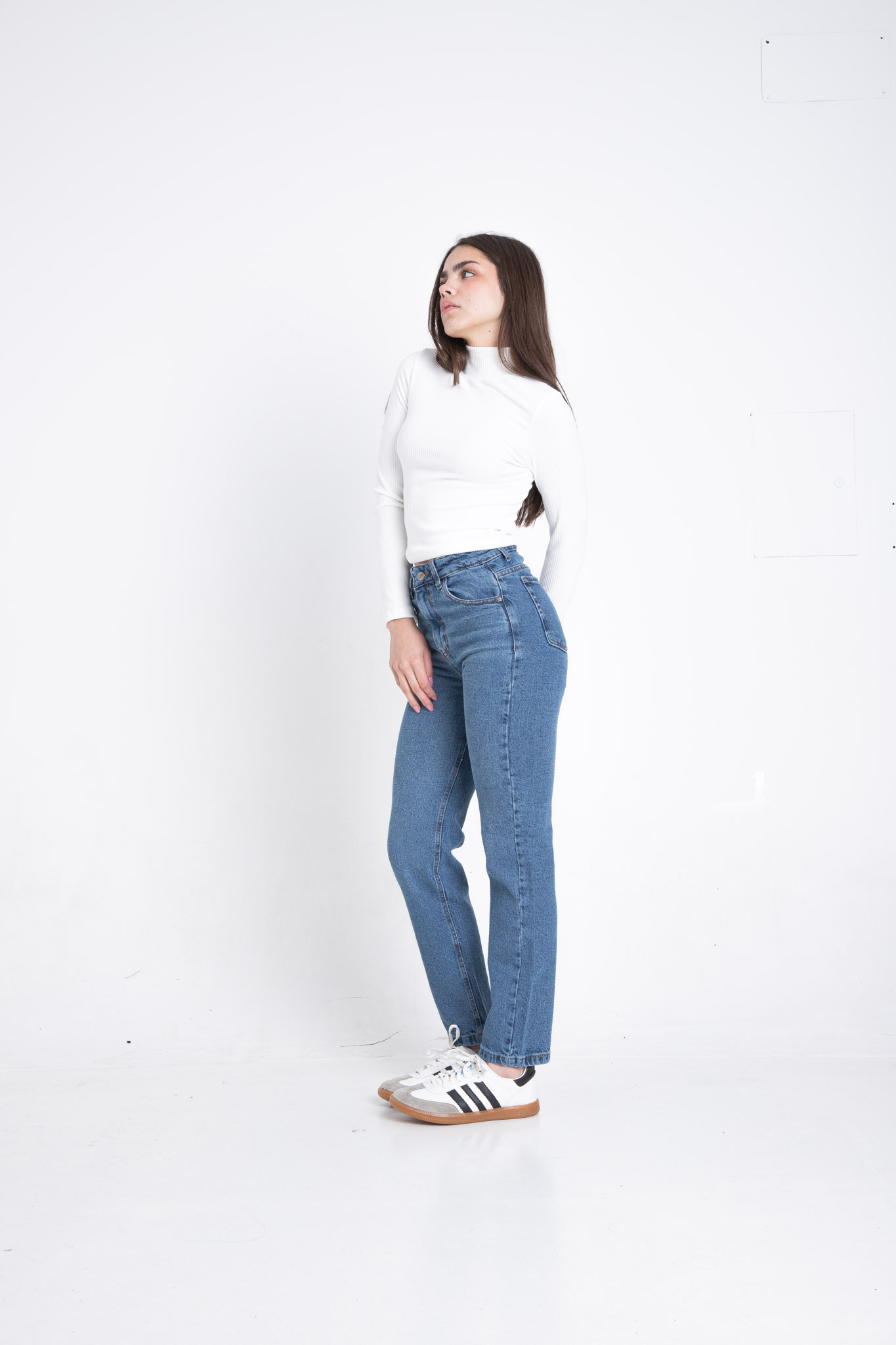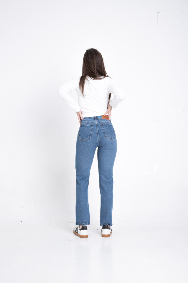 Pantalon recto tiro medio, con bigotes . Semi rigido