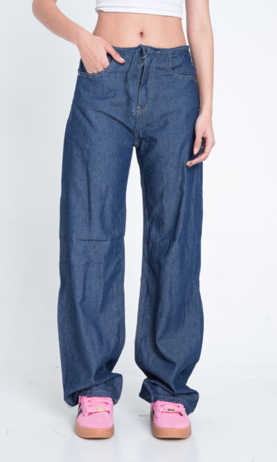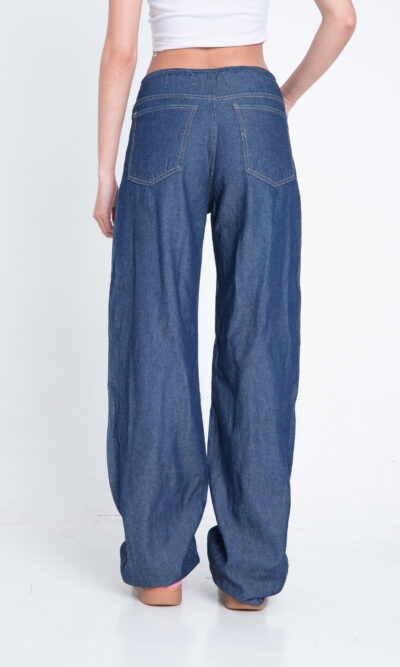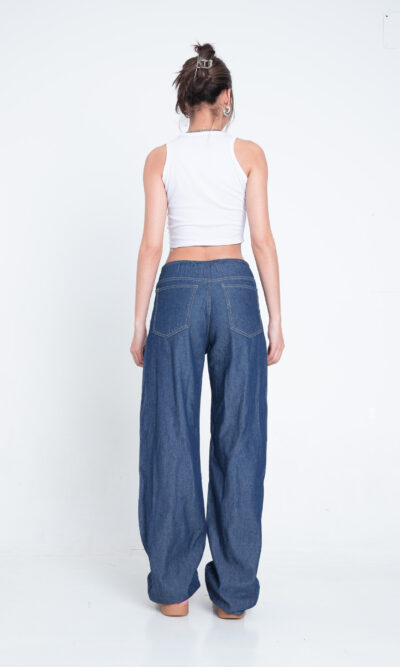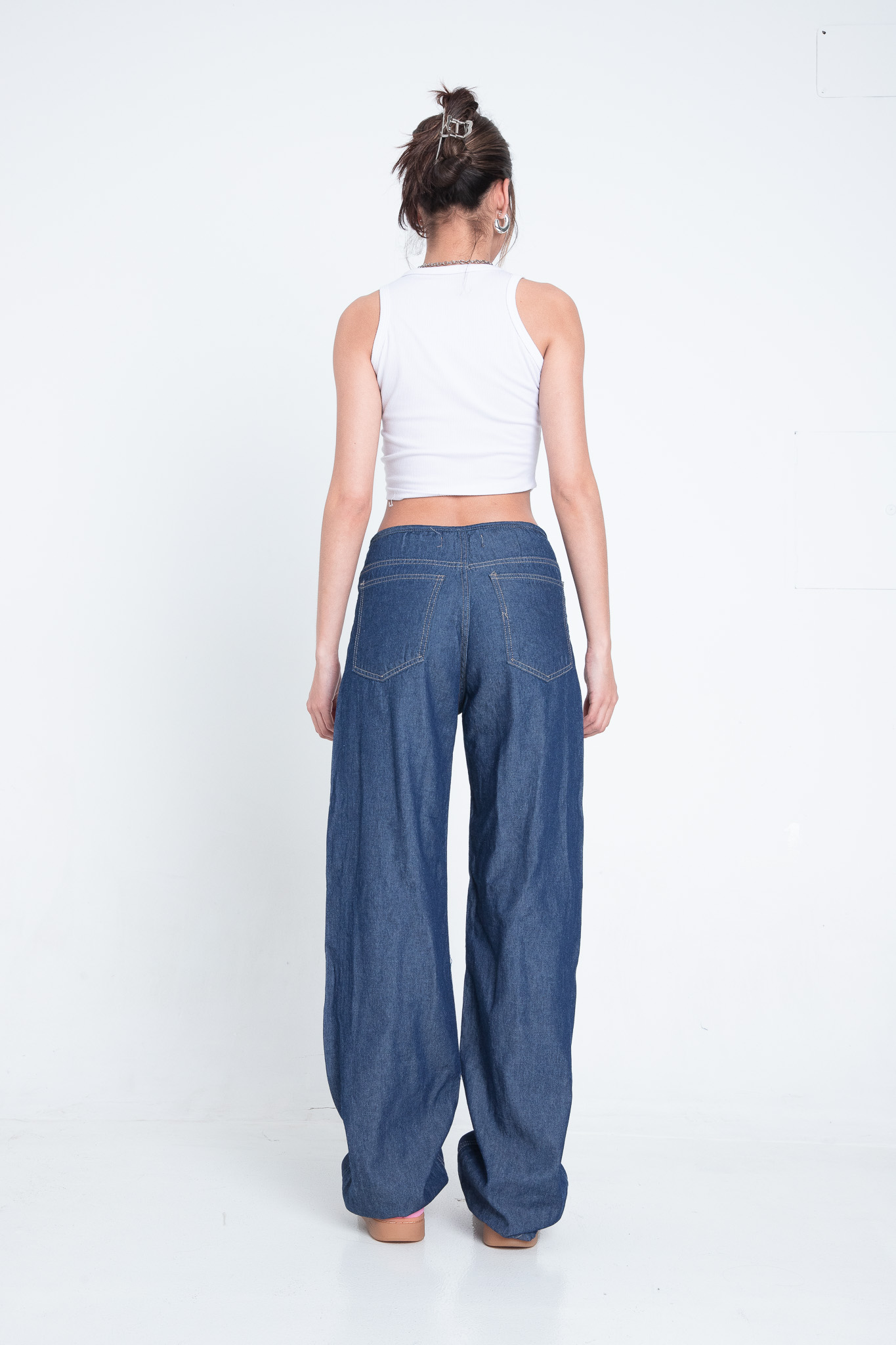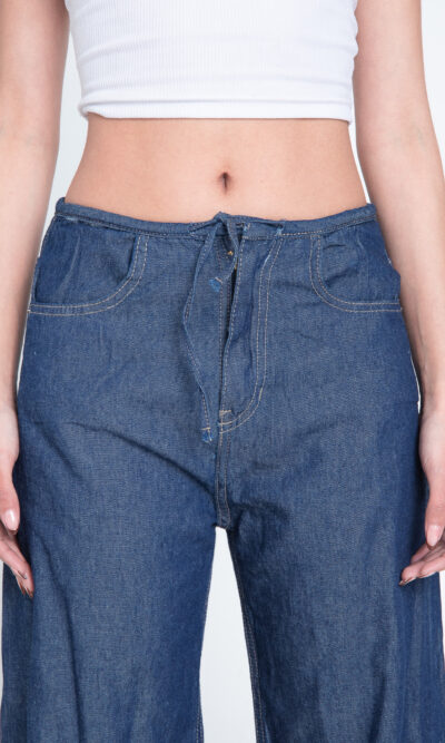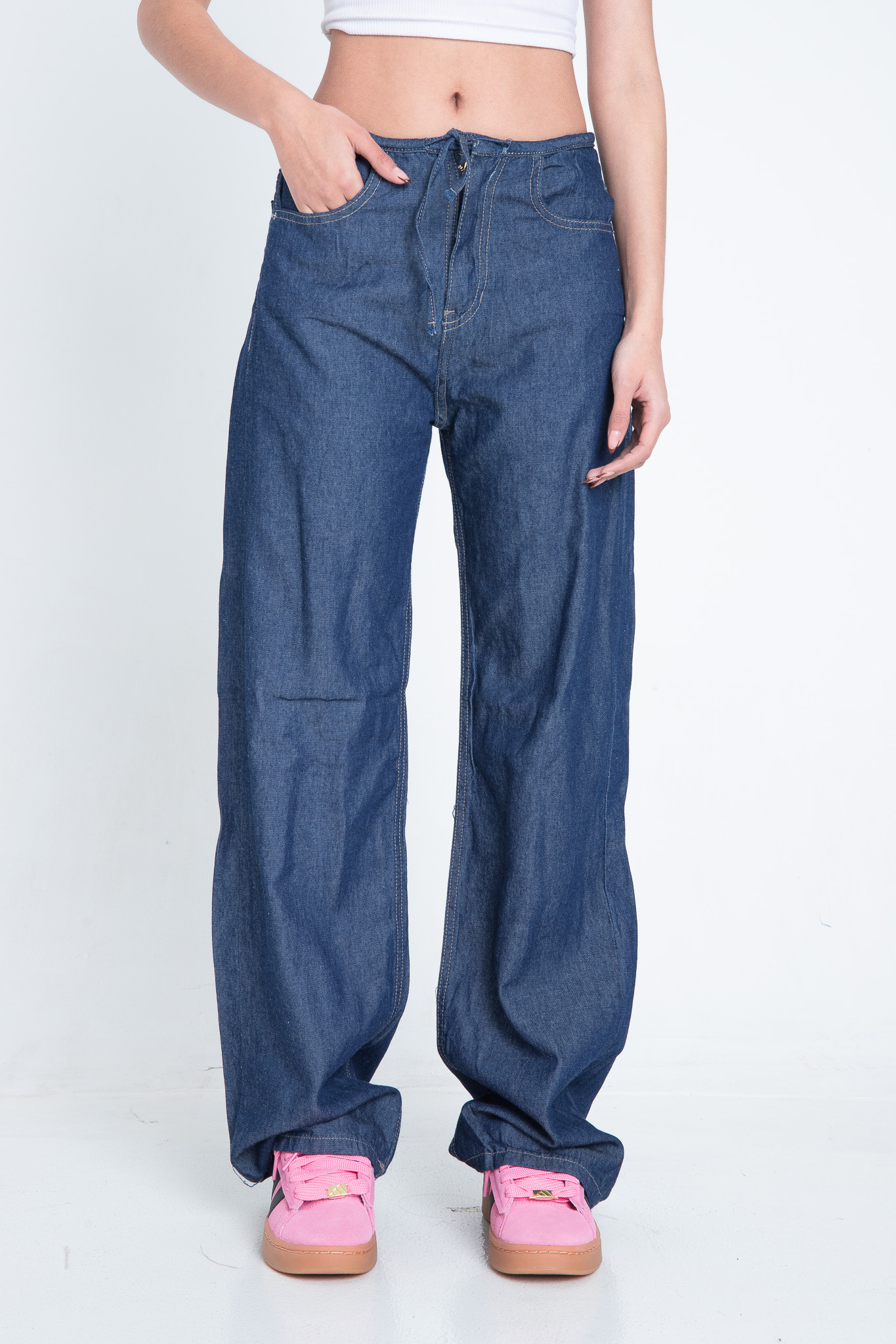 Pantalon recto relaxed con cordon en cintura, Tiro medio. Rigido