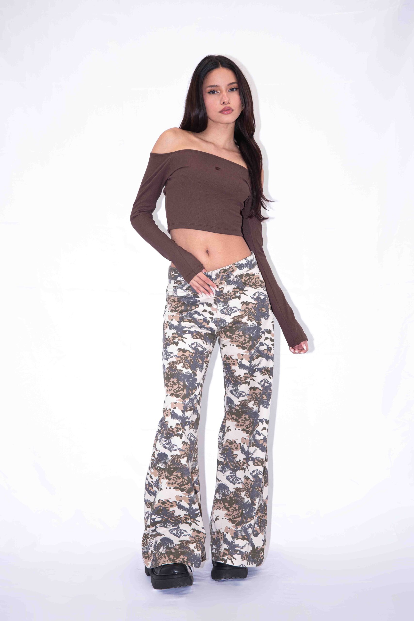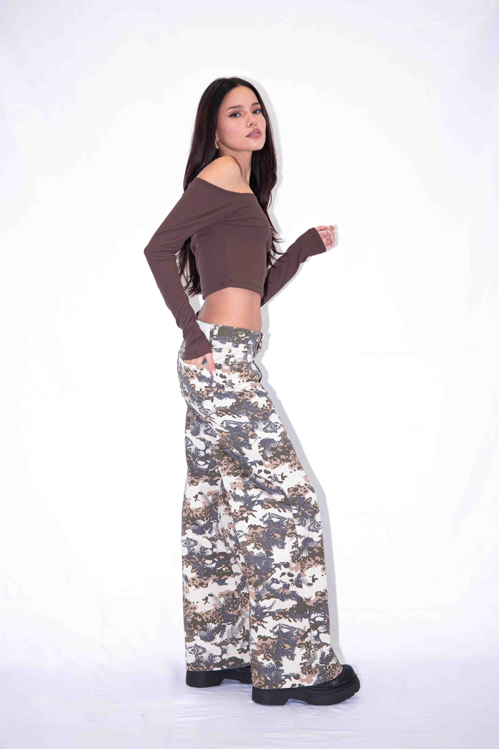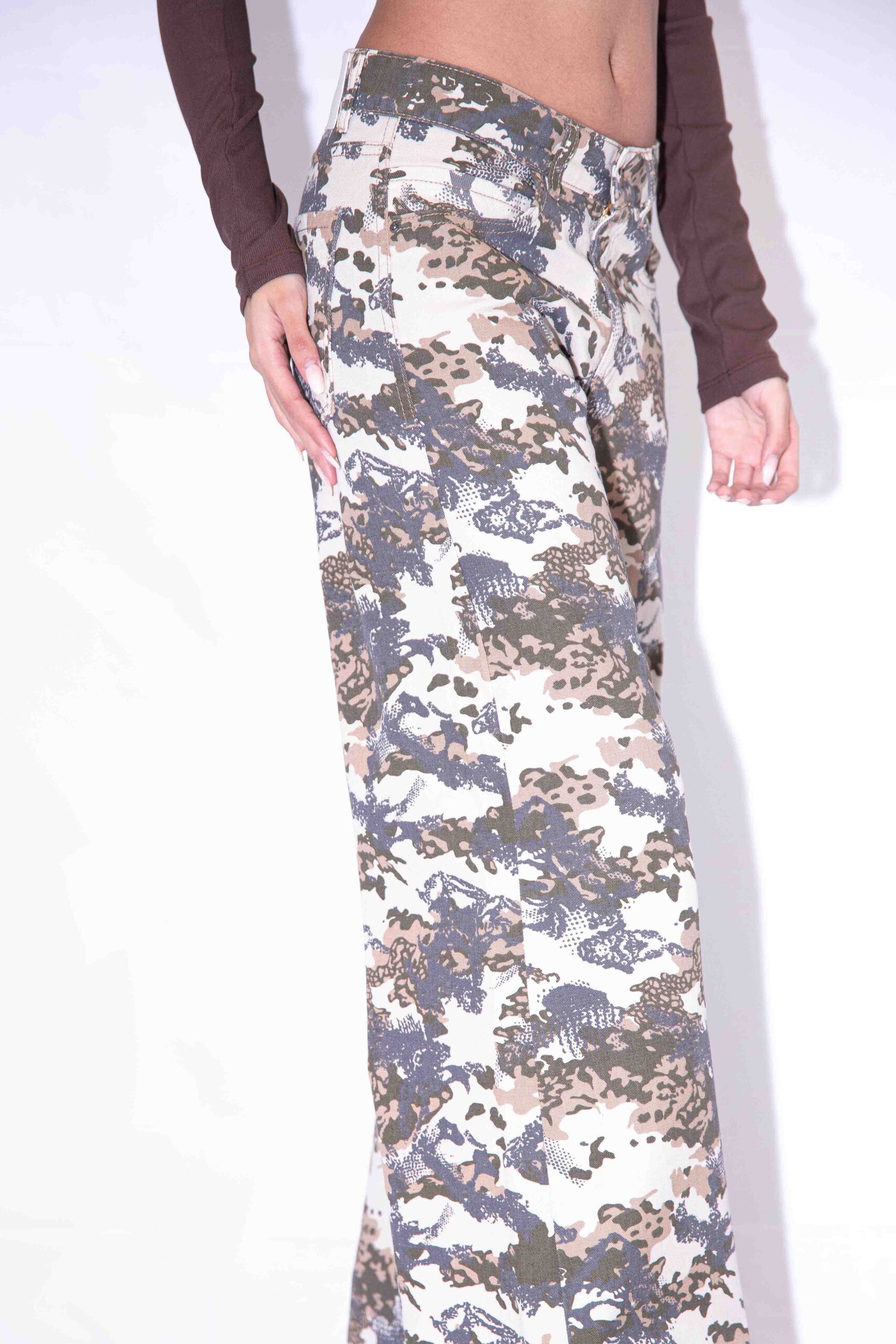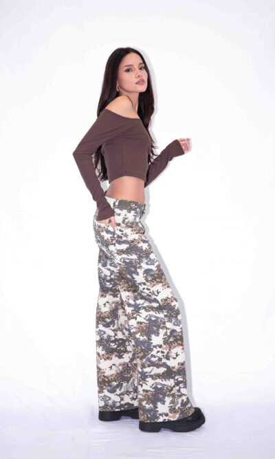 Wide Leg camuflado,tiro medio. Rigido.